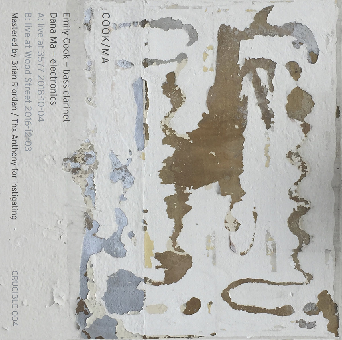 "Musical improvisation might be trickiest when it’s done by a duo. Neither player can hide behind the other—there’s too much space to fill—yet if either gets too loud, it can kill the dialogue. Emily Cook and Dana Ma avoid those pitfalls on Cook/Ma, yet they aren’t afraid to take chances either. The two sidelong pieces here offer all sorts of ebb and flow; at times Cook and Ma simultaneously retreat from center stage, only to come hurtling back at each other like basketball players attacking a jump ball. Cook’s bass clarinet playing is full and dense, and when Ma cranks up his electronics to match, the pair sound more like an ensemble than a duo. But throughout Cook/Ma, their conversation is paramount, and compelling." - Marc Masters
